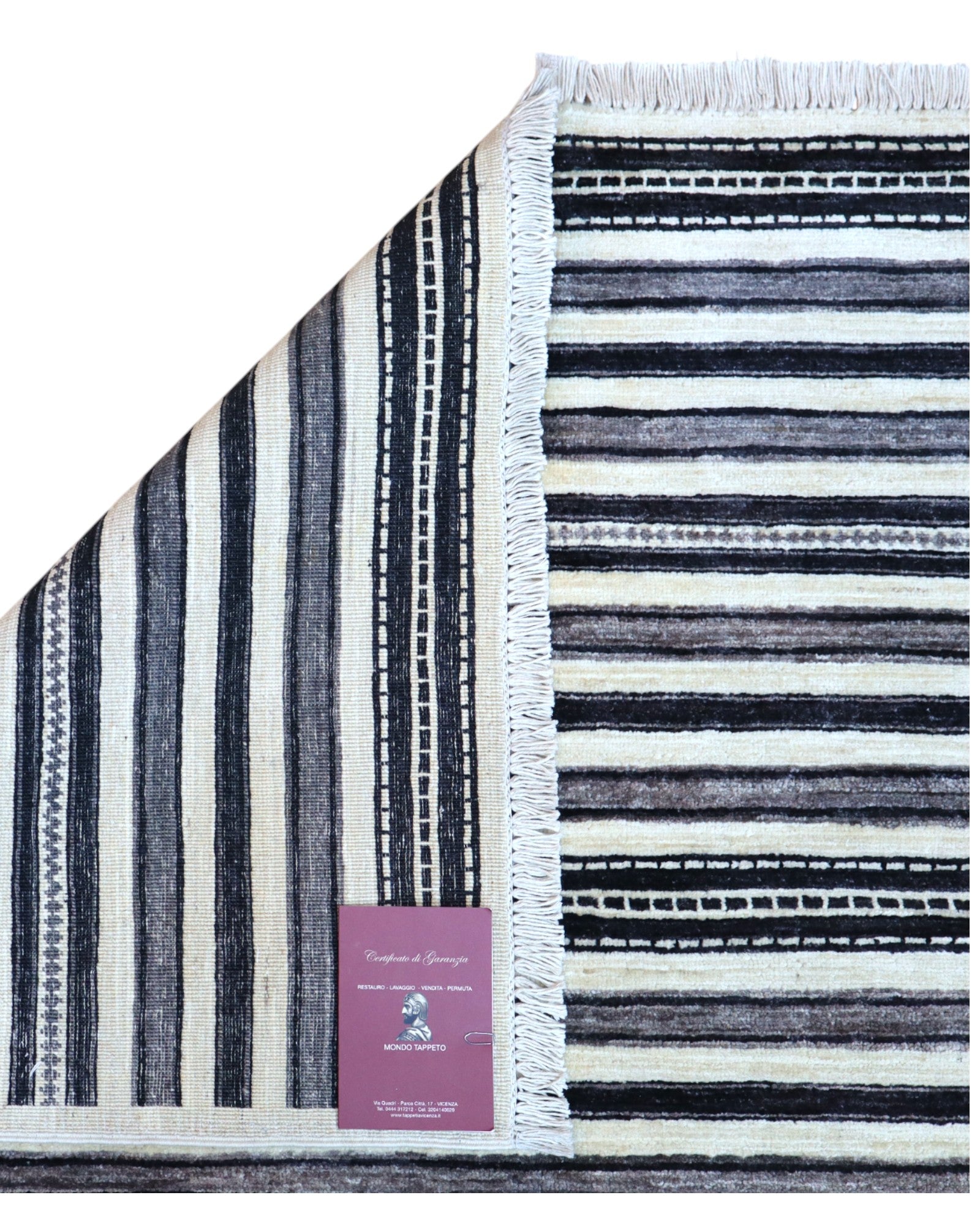 This modern rug is a true masterpiece of contemporary art and design . It was hand-knotted on a traditional loom by expert craftsmen [cite: 2025-06-14], with a durable cotton warp and weft and a pure wool pile dyed with vegetable dyes . This 198 x 150 cm creation exudes a unique charm and superior quality.