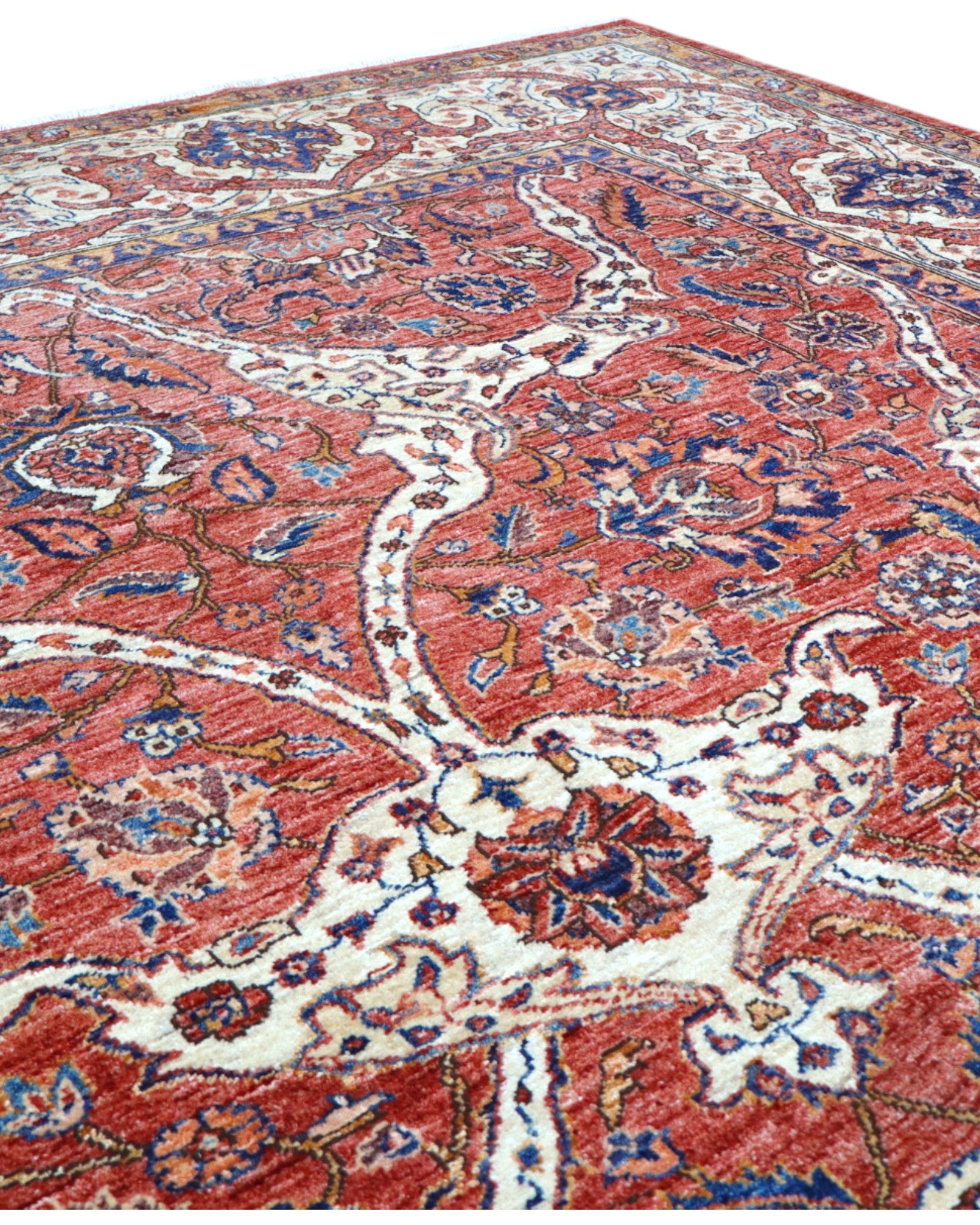 This Heriz rug is a true masterpiece of art and tradition. It is hand-knotted on a traditional loom by expert craftsmen, with a durable cotton warp and weft and a pure wool pile dyed with vegetable dyes. This 343 x 250 cm creation exudes unique charm and superior quality.