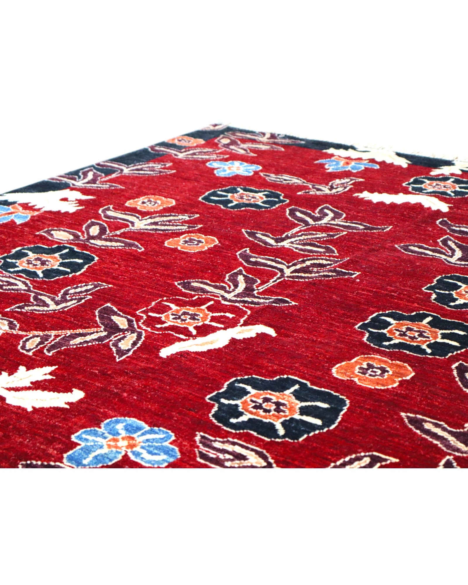 This modern rug is a unique work of art, designed by art academy- trained artist Darios . Expert artisans hand-knotted this design on a traditional loom with a durable cotton warp and weft and a pure wool pile dyed with vegetable dyes . This 194 x 151 cm creation brings a touch of stylized nature and contemporary design to your home.
