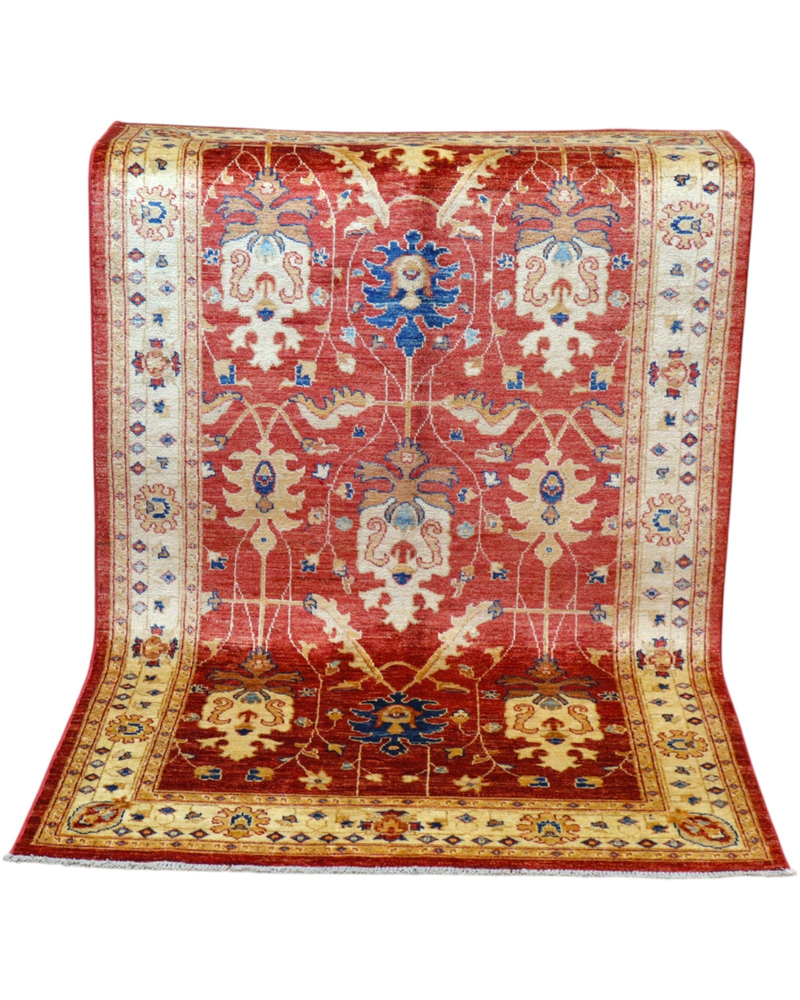 This Ziegler rug is hand-woven and knotted on traditional looms by expert craftsmen, with a durable cotton warp and weft and a pure wool pile dyed with vegetable dyes. Measuring 170 x 120 cm, it represents a refined example of classic elegance.