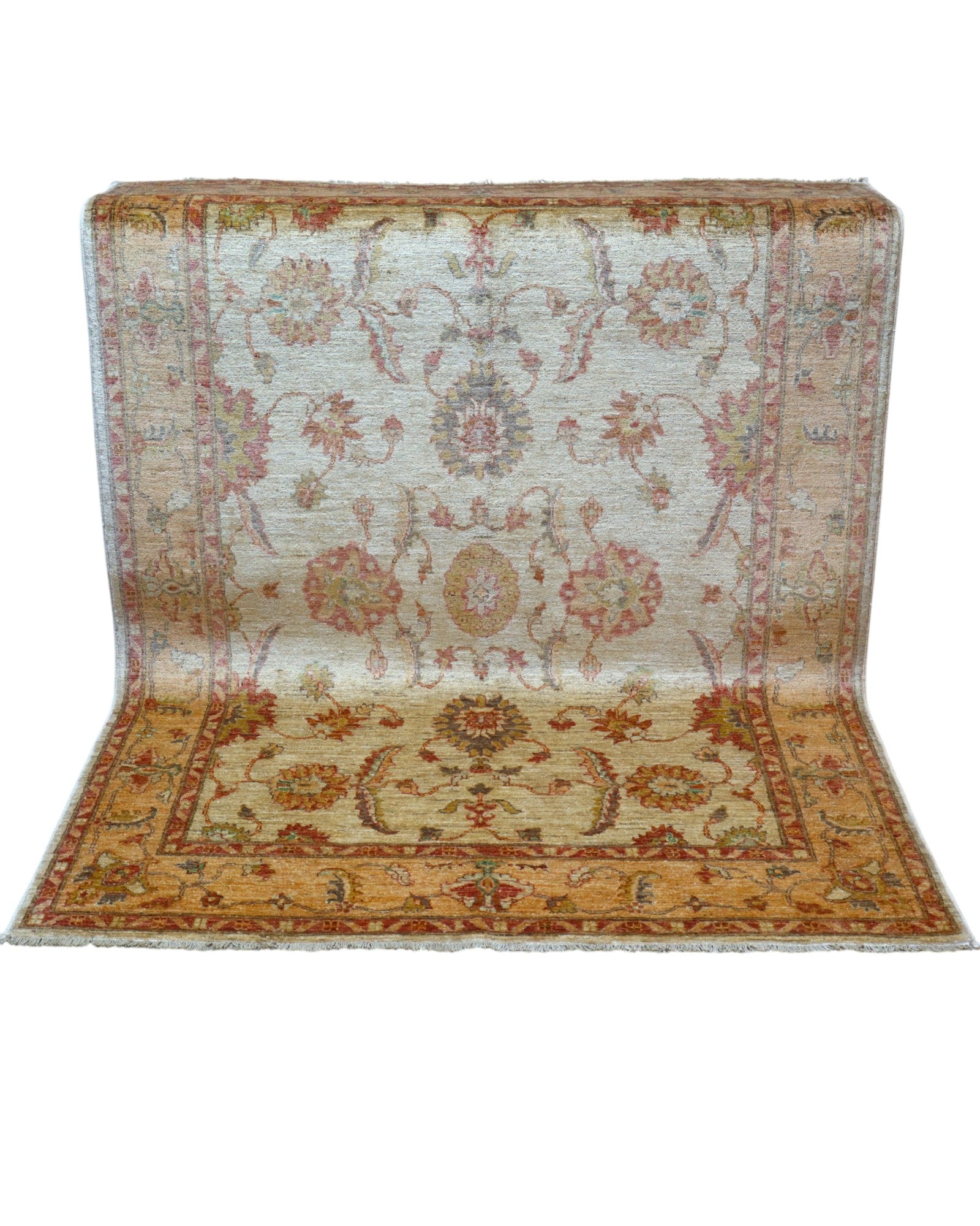 This Ziegler rug is a true masterpiece of art and tradition. It was hand-knotted on a traditional loom by expert craftsmen, with a durable cotton warp and weft and a pure wool pile dyed with vegetable dyes. This 198 x 150 cm creation exudes a unique charm and superior quality.