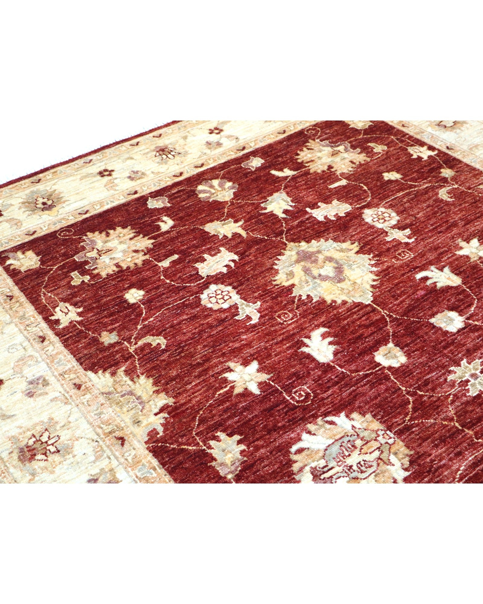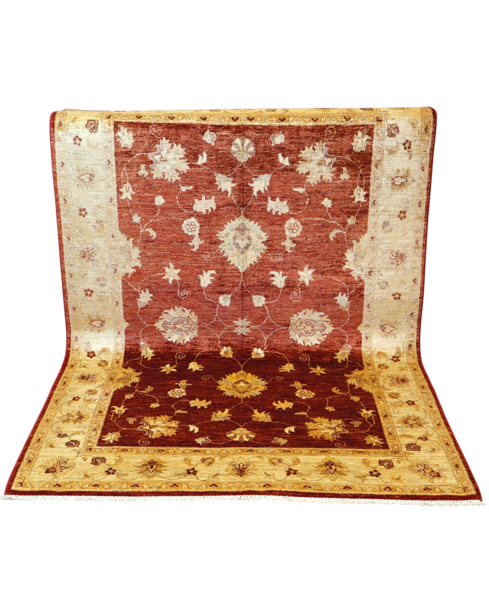 The design features a red field, adorned with decorative floral motifs that elegantly unfold across the entire surface. The harmonious hues of the flowers and ornamental elements create a vibrant and captivating visual effect, giving the rug a luxurious character and timeless beauty. The frame, also decorated with floral motifs, harmoniously completes the design.