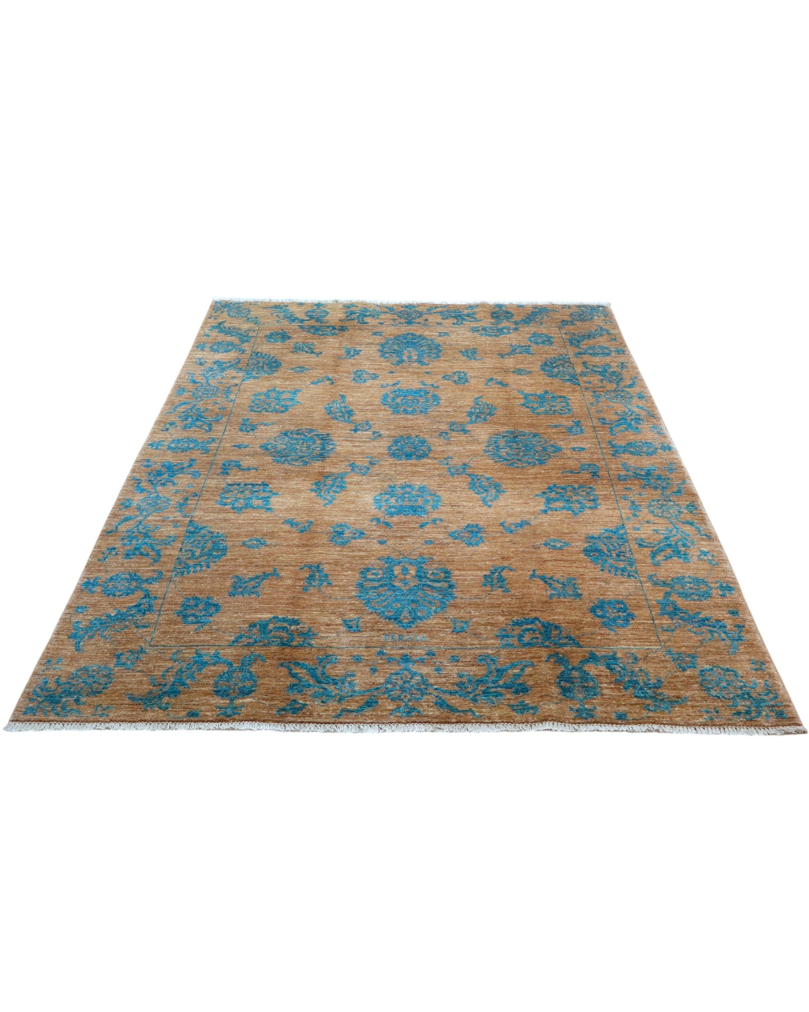 This Ziegler rug is a true expression of artistry and craftsmanship . It is hand-knotted on a traditional loom by expert craftsmen, with a durable cotton warp and weft and a pure wool pile dyed with vegetable dyes . This 245 x 169 cm creation is a specimen of remarkable beauty and exquisite workmanship. The design features a sophisticated beige ground , which radiates brightness and serenity. Enriched with contemporary patterns in vibrant turquoise , the rug creates a captivating visual dialogue that unfolds harmoniously across the entire surface. The combination of hues and rich detailing give this rug an intrinsic elegance and an aura of refined beauty. Suitable for adding a touch of sophistication and distinctive charm to any room in your home.
