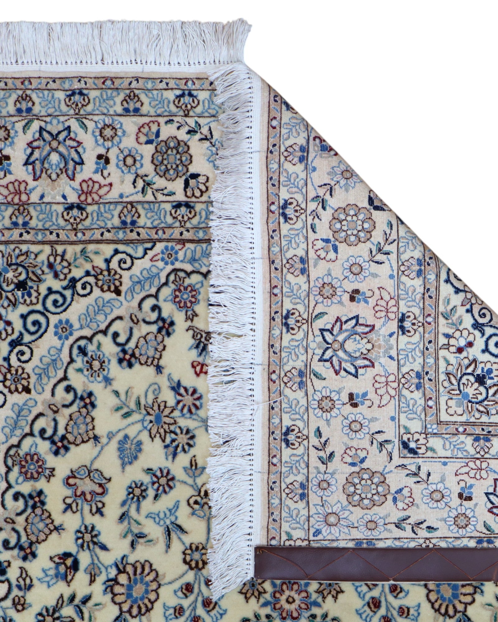 Un’opera che incarna l’eccellenza della tradizione persiana. Questo tappeto Nain Habibian, annodato interamente a mano da esperti artigiani, unisce la robustezza di una base in cotone alla morbidezza e brillantezza di un vello in lana mista seta, che esalta la definizione dei dettagli e la luminosità del disegno.
