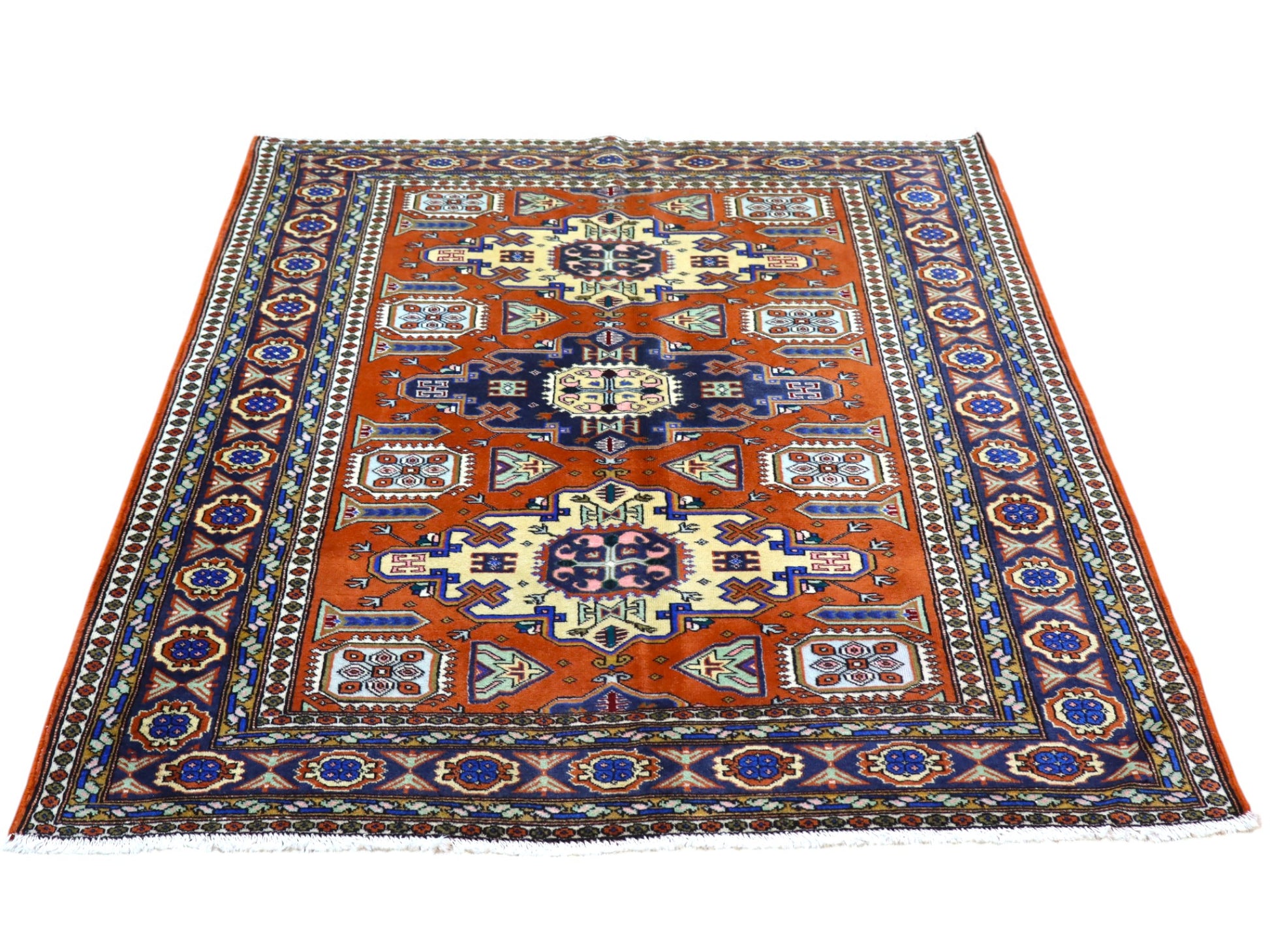 Aggiungi un tocco di eleganza e calore alla tua casa con questo splendido tappeto Ardabil. Annodato a mano con lana di alta qualità e colori vegetali, questo tappeto emana calore e raffinatezza. Il motivo geometrico centrale, tipico dei tappeti Ardabil, cattura subito l'attenzione, mentre il rosso mattone intenso del campo principale aggiunge un tocco di calore. I dettagli in beige e blu completano l'opera, creando un'armonia visiva affascinante e accogliente.