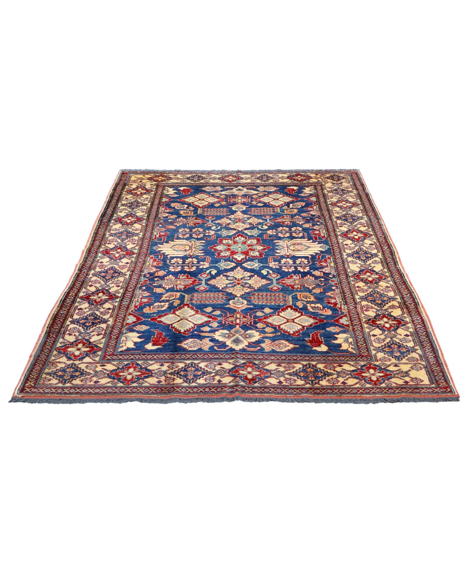 Tappeto Kazak - Un'Armonia di Blu e Geometrie (213 x 164 cm)