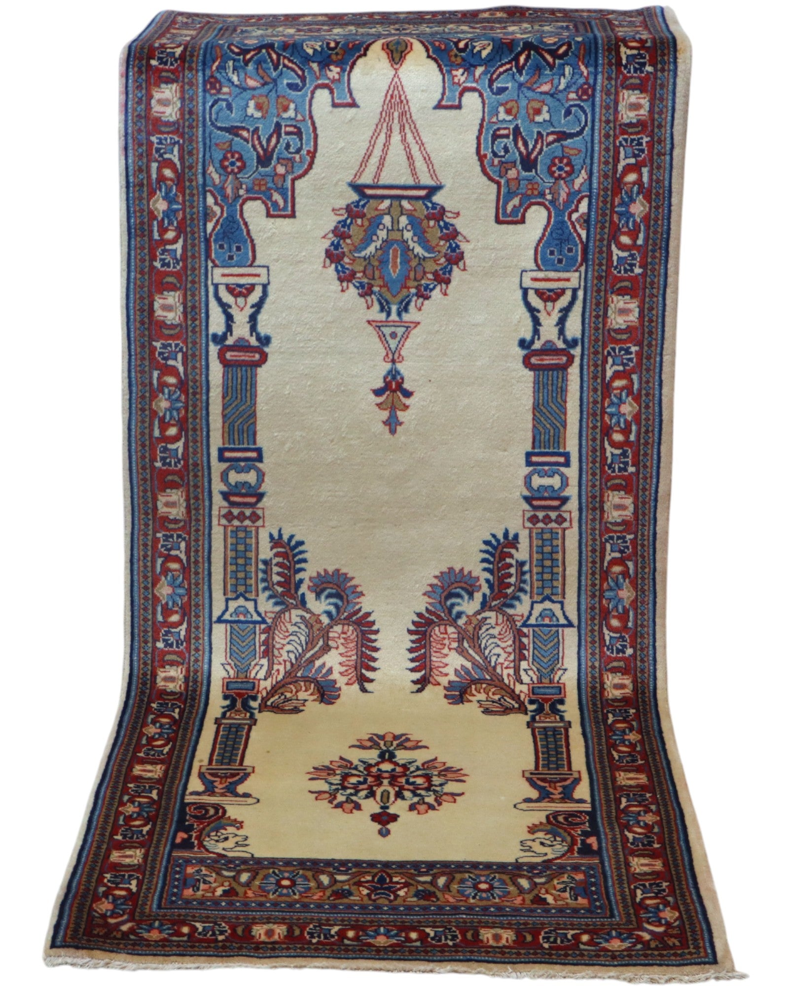 Questo tappeto Sarough si caratterizza per il suo design classico e raffinato, con un fondo avorio impreziosito da elementi decorativi eleganti. Interamente annodato a mano con vello in lana tinta con colori vegetali, combina qualità, resistenza e pregio estetico. Le dimensioni di 205 x 82 cm lo rendono perfetto come corridore per ambienti eleganti e spazi di passaggio.