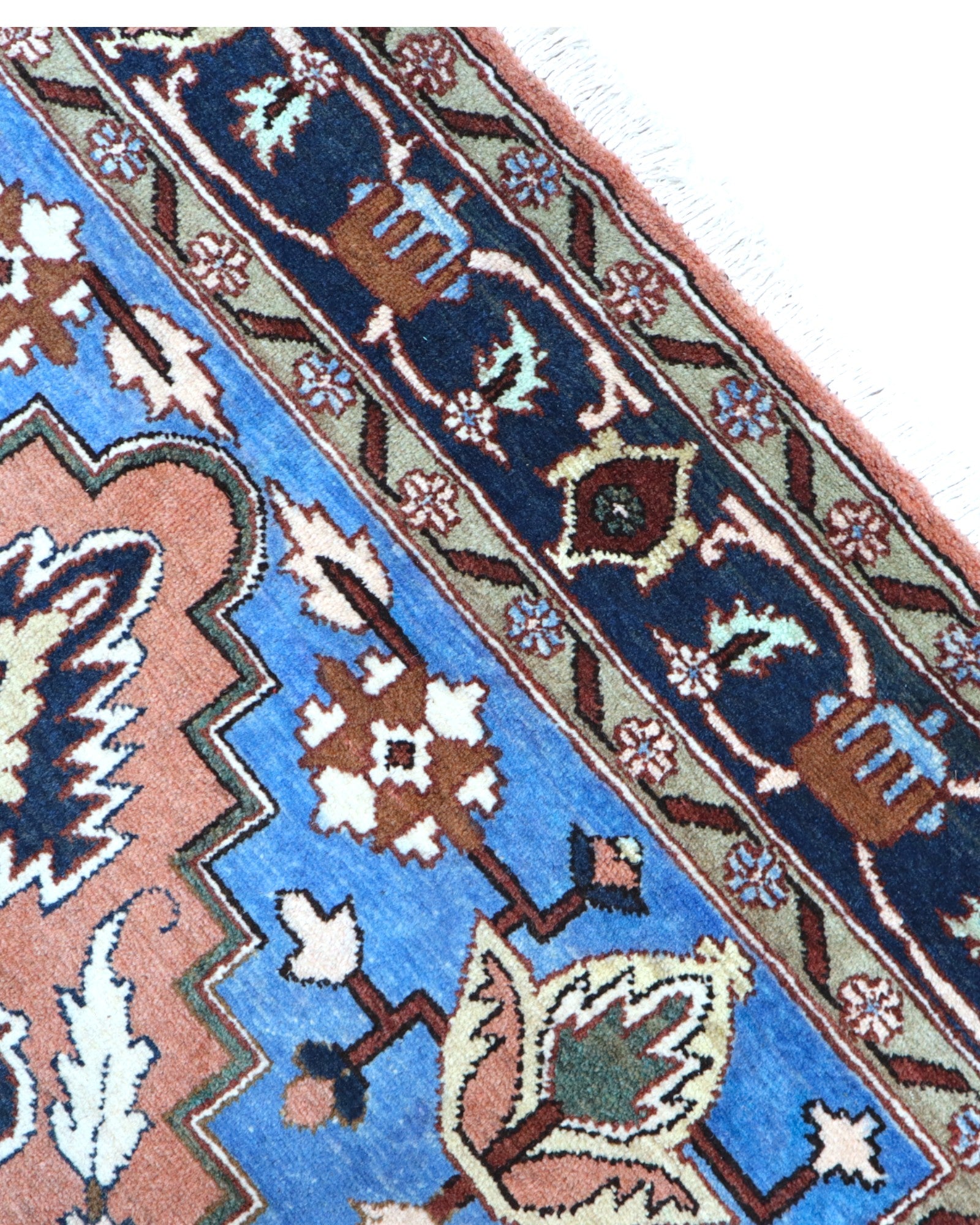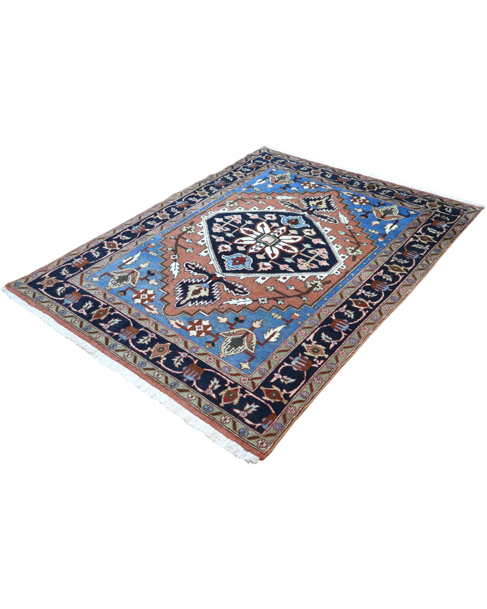 Questo tappeto Heriz è un vero e proprio capolavoro di arte e tradizione. È stato annodato a mano sul telaio tradizionale da esperti artigiani, con trama e ordito in cotone resistente e vello in pura lana tinta con colori vegetali. Questa creazione di 210 x 160 cm emana un fascino unico e una qualità superiore.