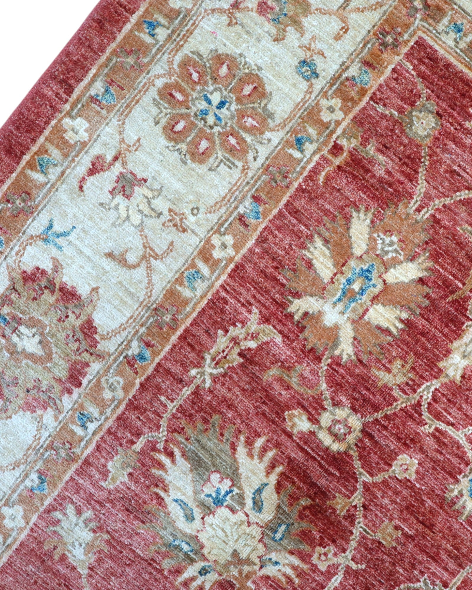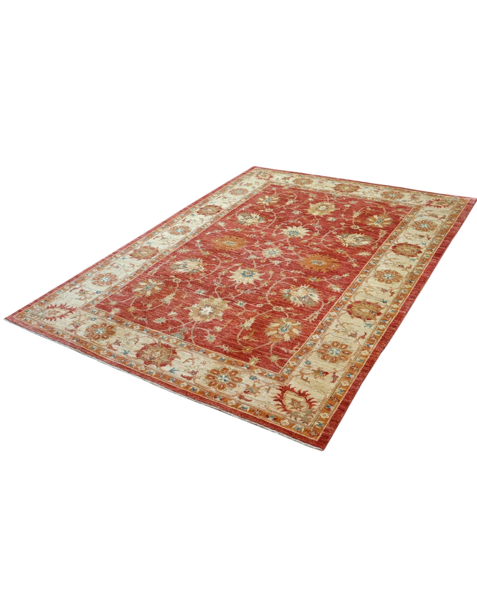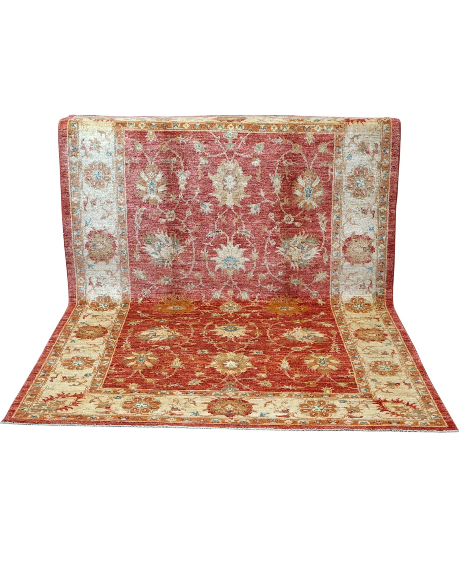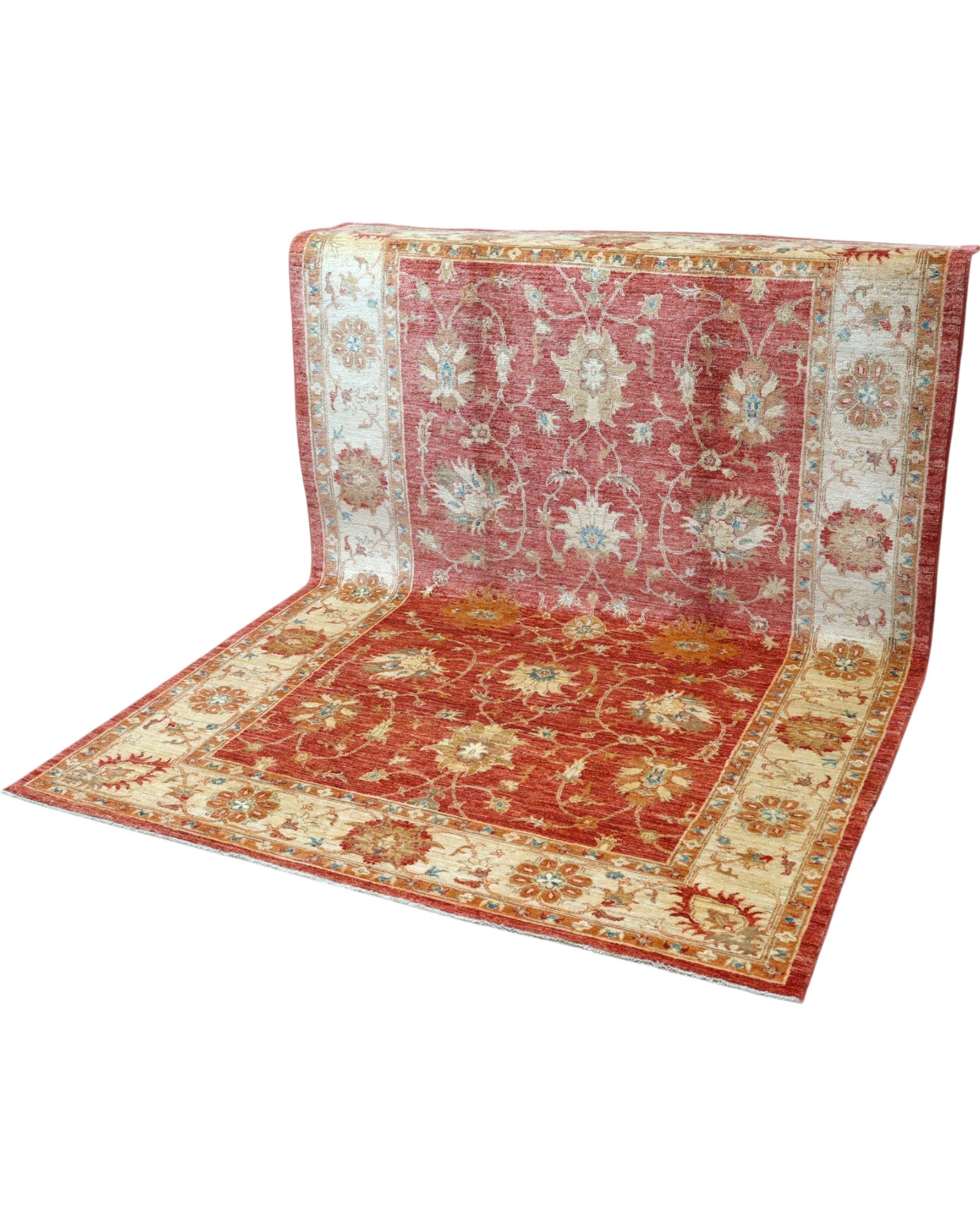 Questo tappeto Ziegler è un'autentica espressione di arte e maestria artigianale. Annodato a mano sul telaio tradizionale da esperti artigiani, con trama e ordito in cotone resistente e vello in pura lana tinta con colori vegetali. Questa creazione di 245 x 171 cm si rivela un esemplare di notevole bellezza e squisita fattura.