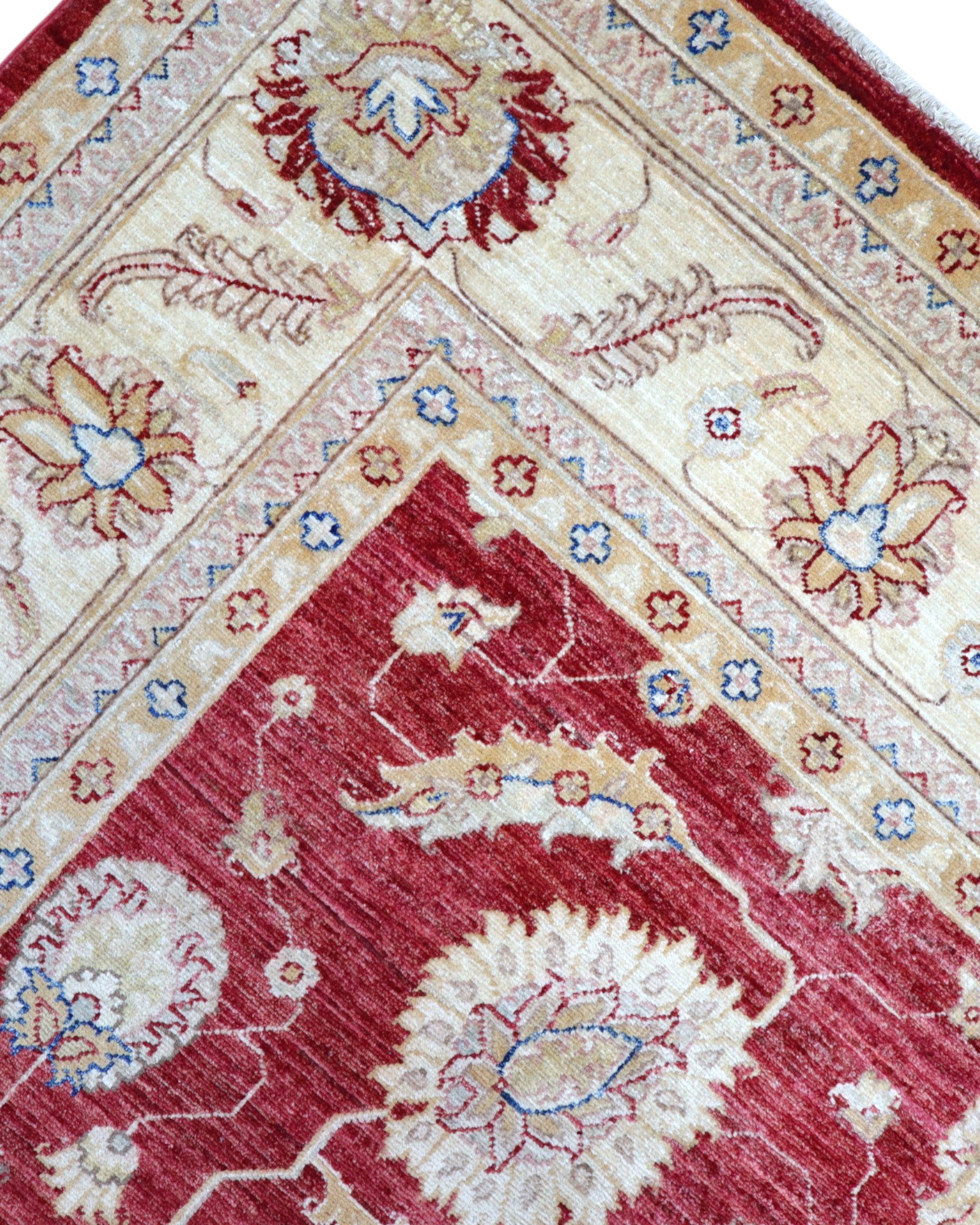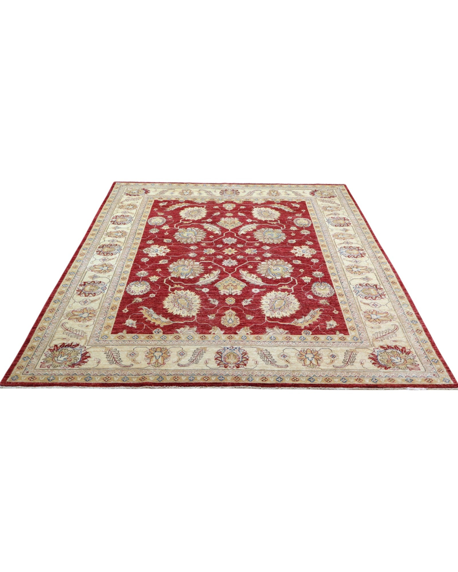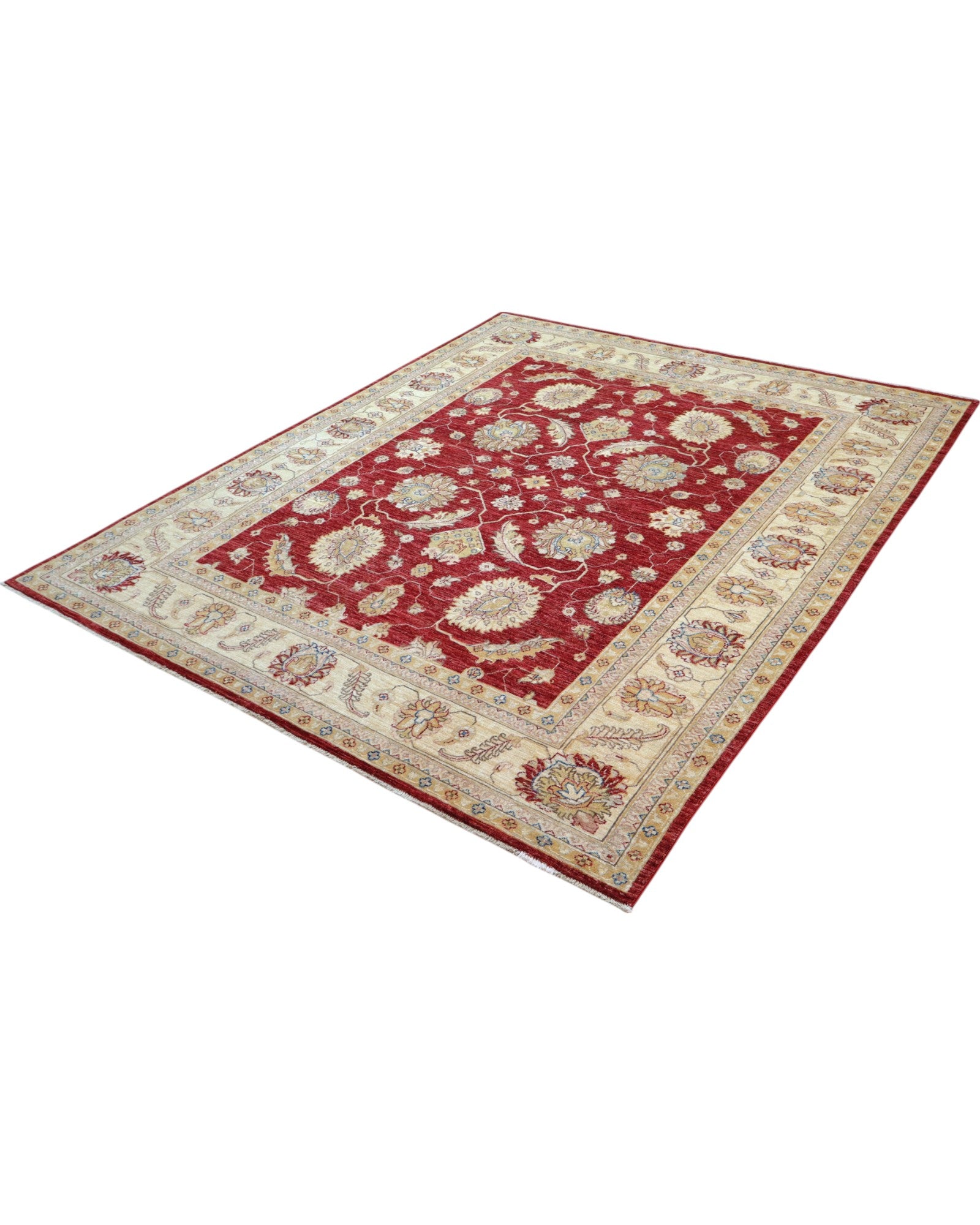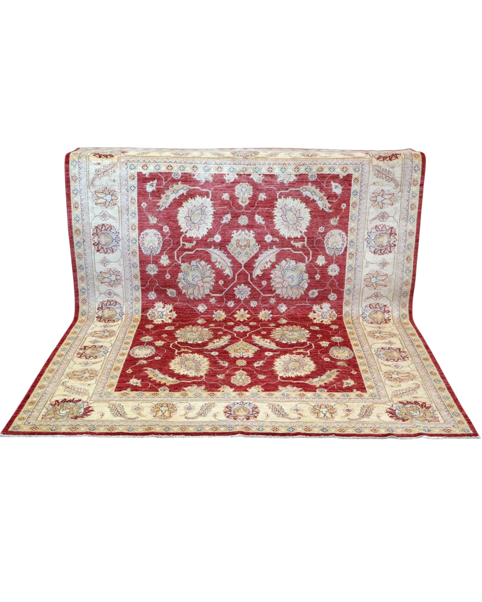 Questo tappeto Ziegler è un'autentica espressione di arte e maestria artigianale. È stato annodato a mano sul telaio tradizionale da esperti artigiani, con trama e ordito in cotone resistente e vello in pura lana tinta con colori vegetali.