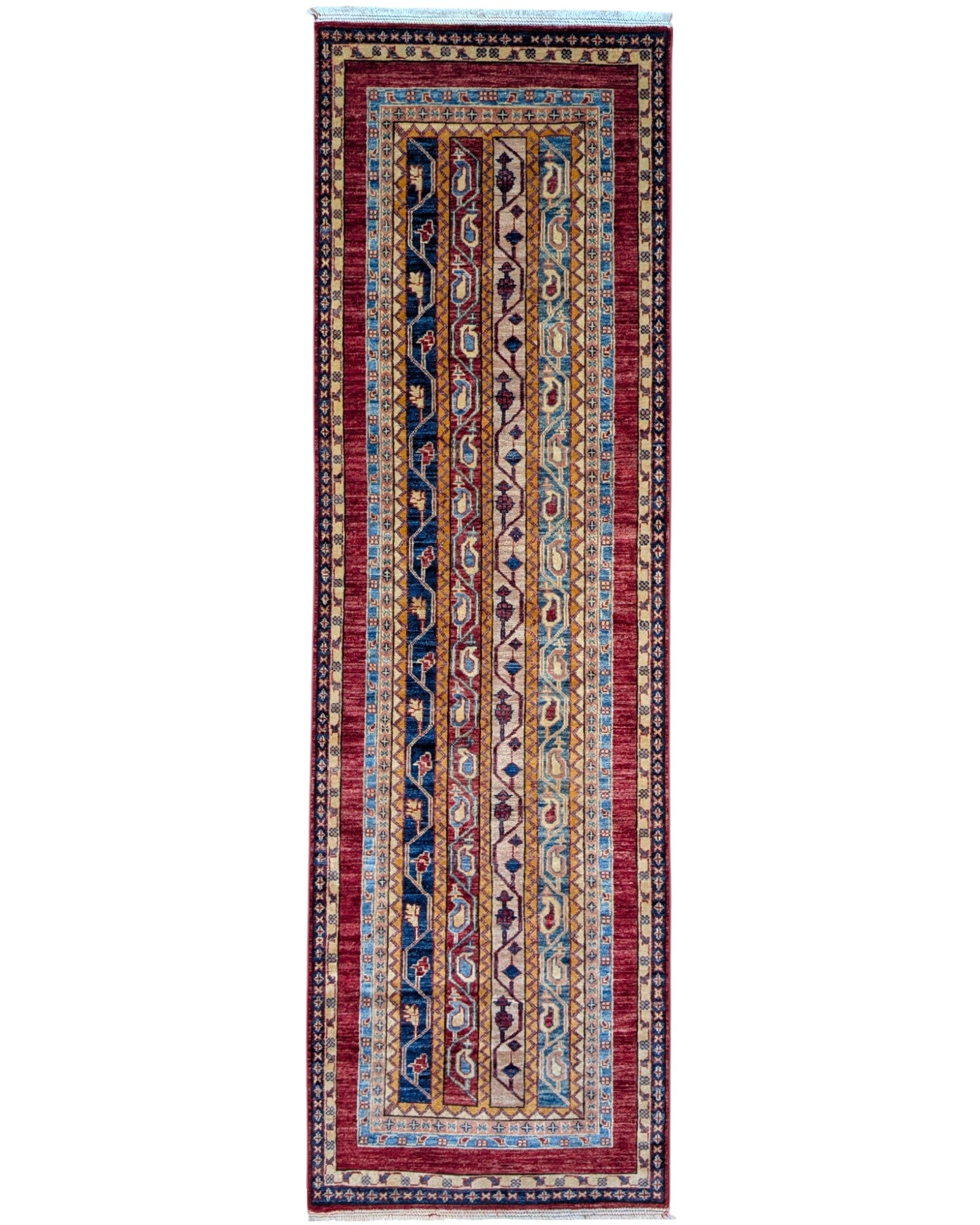 Il design si distingue per i suoi motivi geometrici che si snodano con armonia lungo la sua lunghezza. La combinazione di tonalità e la ricchezza dei dettagli conferiscono alla passatoia un'eleganza intrinseca e una magnificenza che non passa inosservata.