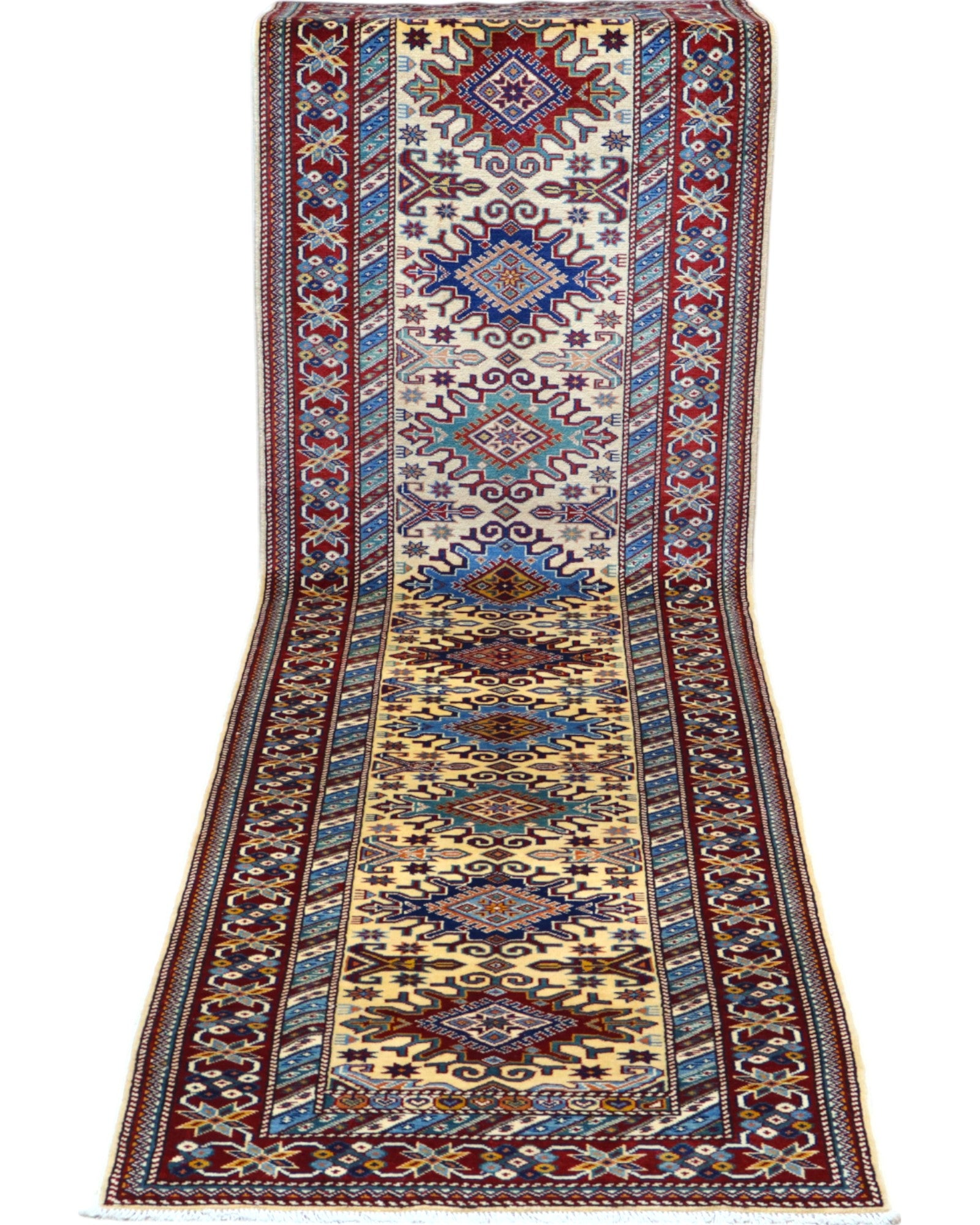 Tappeto Shirvan - Geometrie Distintive in Beige e Rosso (301 x 83 cm)