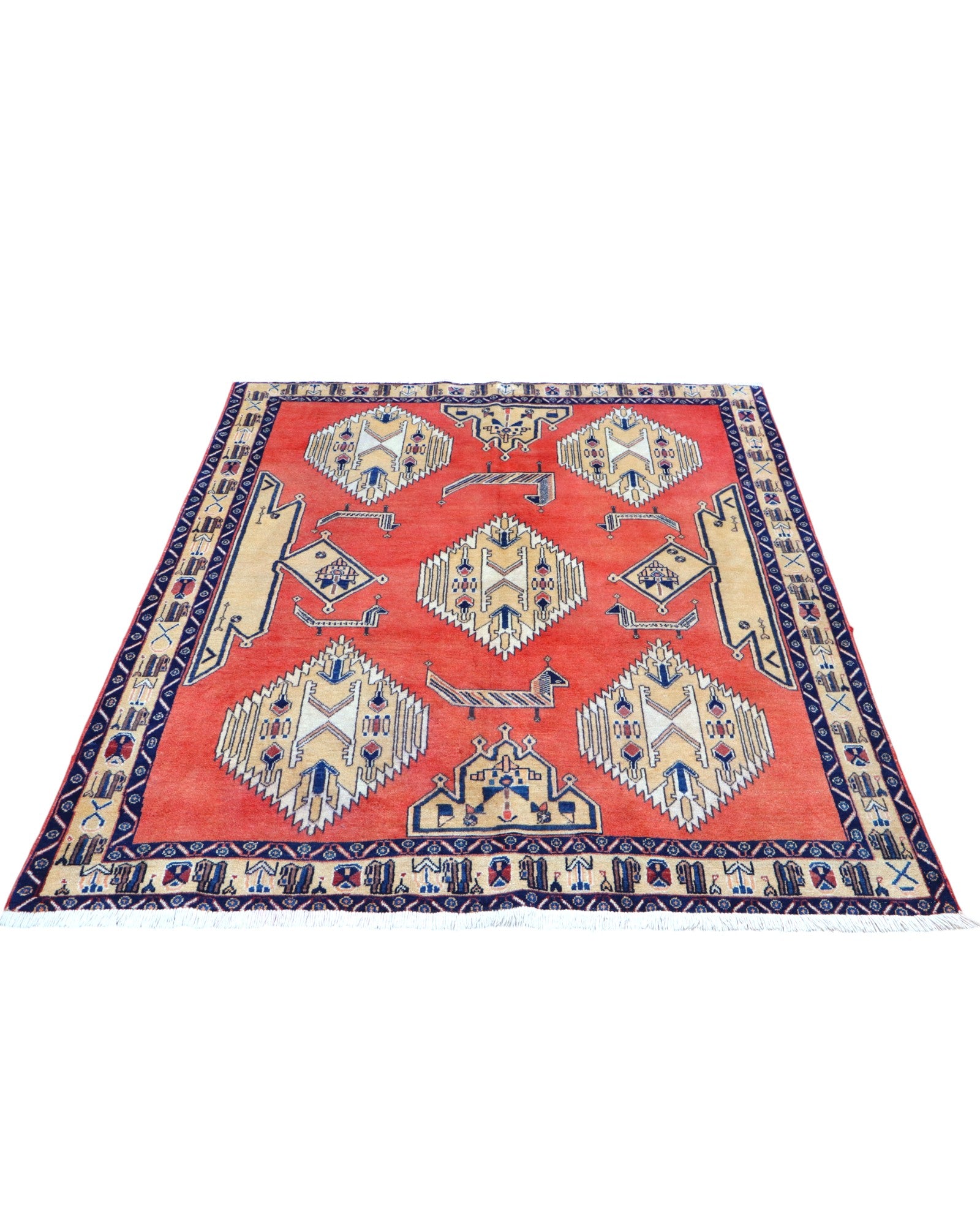 Questo tappeto Afshar è un autentico capolavoro di arte e tradizione persiana. Annodato a mano su telaio tradizionale da esperti artigiani, con trama e ordito in cotone resistente e vello in pura lana tinta con colori vegetali, le sue dimensioni di 225 x 142 cm lo rendono ideale per arricchire qualsiasi ambiente della casa.