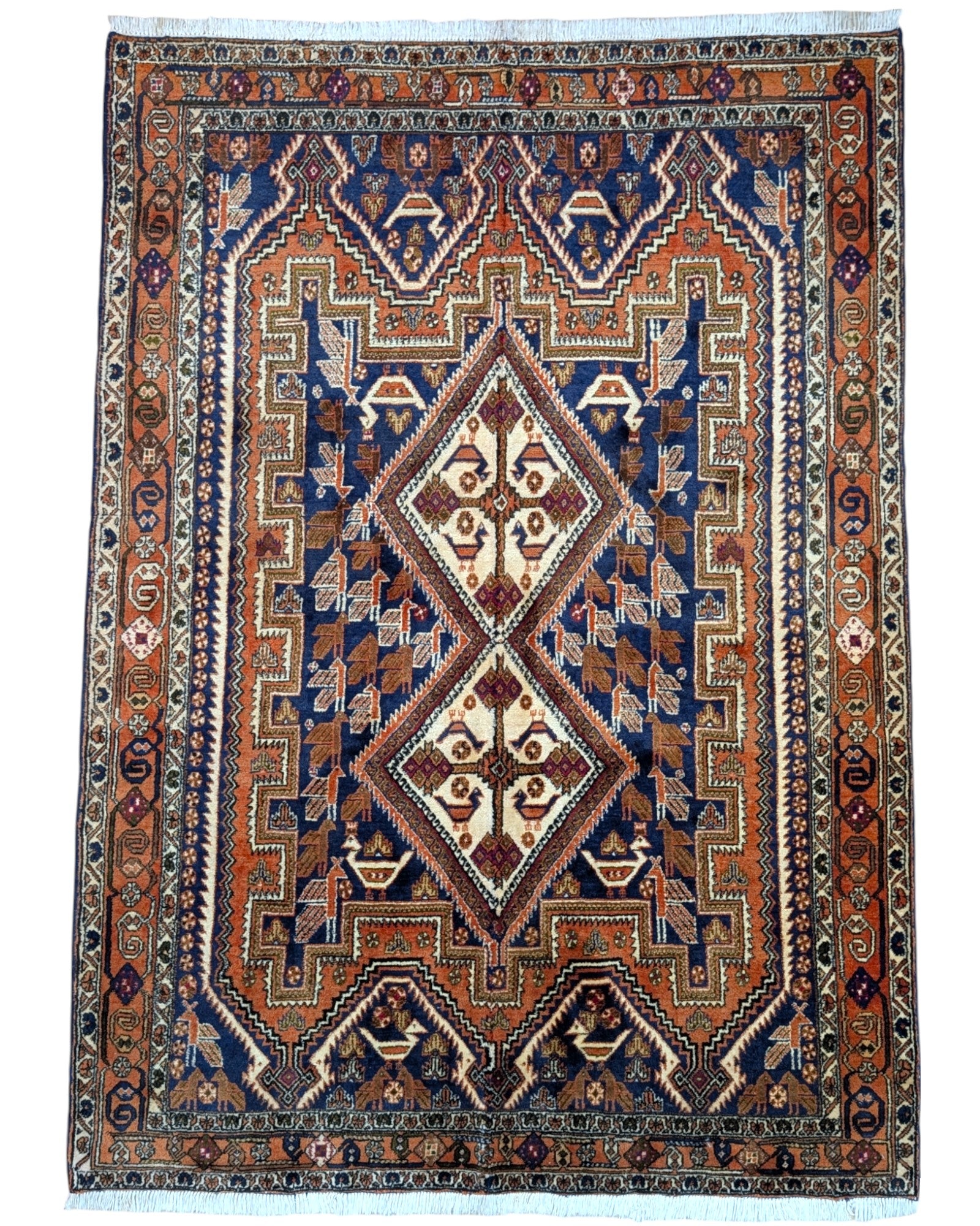 Questo tappeto Afshar rappresenta un autentico capolavoro di arte e tradizione persiana. Annodato a mano su telaio tradizionale, con trama e ordito in cotone resistente e vello in pura lana tinta con colori vegetali, le sue dimensioni di 208 x 150 cm lo rendono perfetto per valorizzare qualsiasi ambiente.