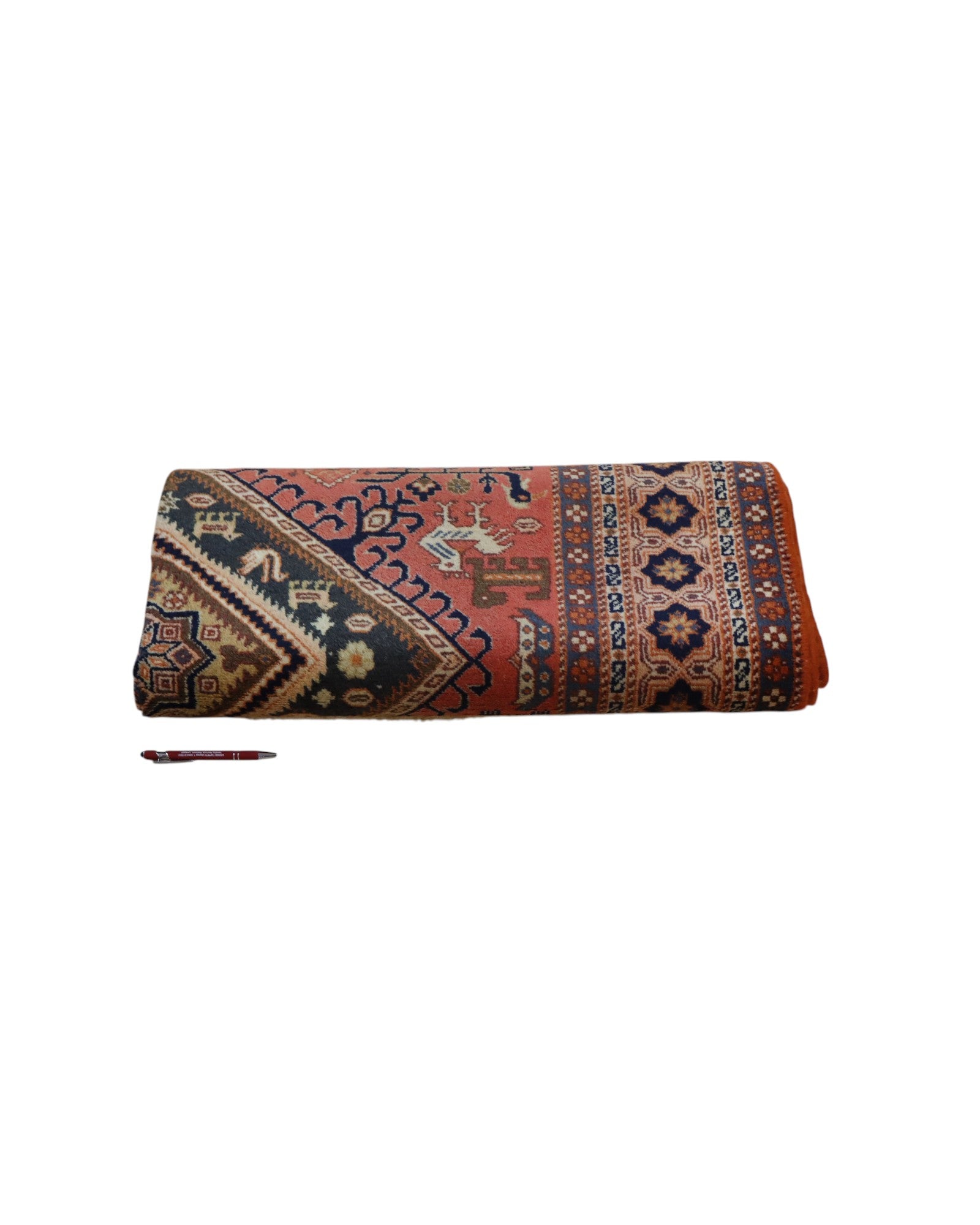 Il Tappeto Ardebil 193x138 cm è un'espressione affascinante della tradizione persiana, con un design distintivo che mescola motivi geometrici e rappresentazioni di animali. Annodato interamente a mano da esperti artigiani, questo tappeto è realizzato con trama in cotone resistente e vello in lana tinta con colori vegetali, che ne garantiscono una lunga durata e una texture morbida al tatto.