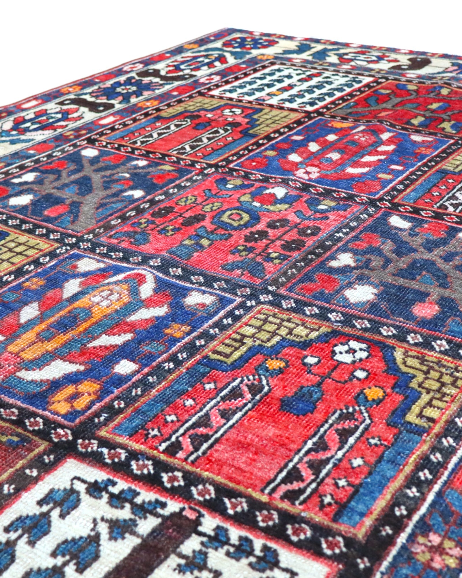 Questo tappeto Bakhtiyari è un autentico capolavoro di arte e tradizione persiana. Annodato a mano su telaio tradizionale, con trama e ordito in cotone resistente e vello in pura lana tinta con colori vegetali, le sue dimensioni di 196 x 148 cm lo rendono ideale per arricchire qualsiasi ambiente della casa.