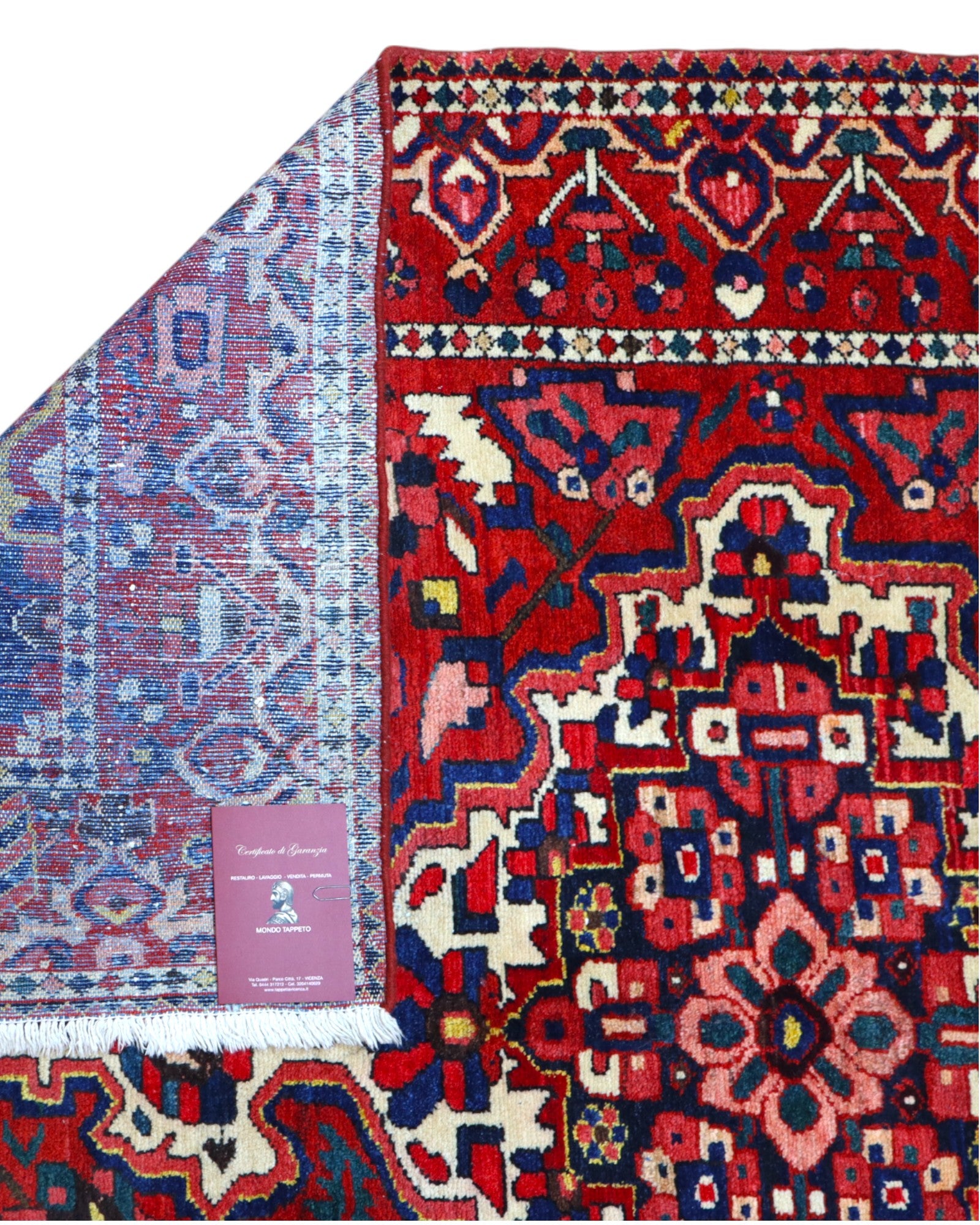 Questo tappeto Bakhtiyari è un autentico esempio di arte tessile persiana. Annodato a mano su telaio tradizionale, con trama e ordito in cotone resistente e vello in pura lana tinta con colori vegetali, le sue dimensioni di 217 x 155 cm lo rendono ideale per valorizzare qualsiasi ambiente della casa.