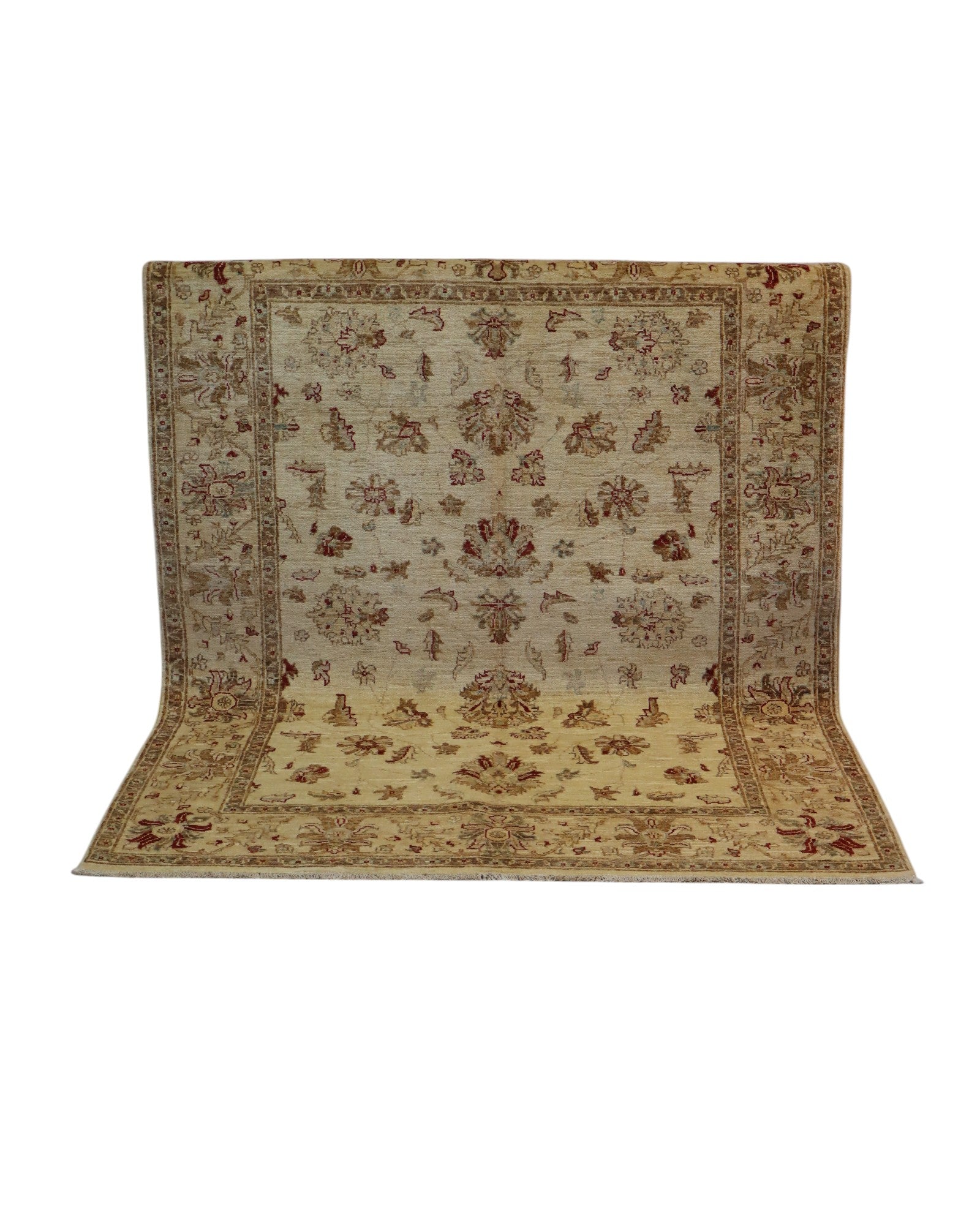 Realizzati con lana di altissima qualità e tinte vegetali delicate, i tappeti Ziegler si distinguono per una palette cromatica sobria che spazia dall’avorio al crema, fino ai toni intensi del rosso, del nero e del blu. Una speciale lavorazione con pietre regala loro un fascino particolare: una lucentezza naturale e un aspetto leggermente consumato, che li rende immediatamente riconoscibili.