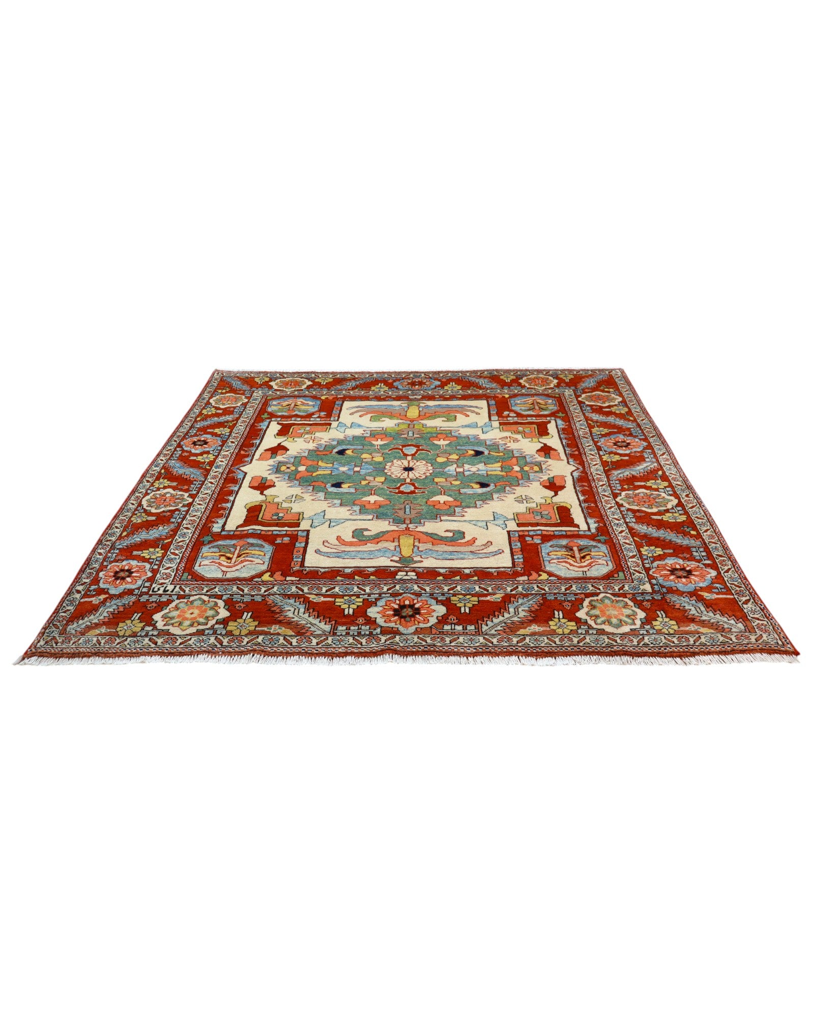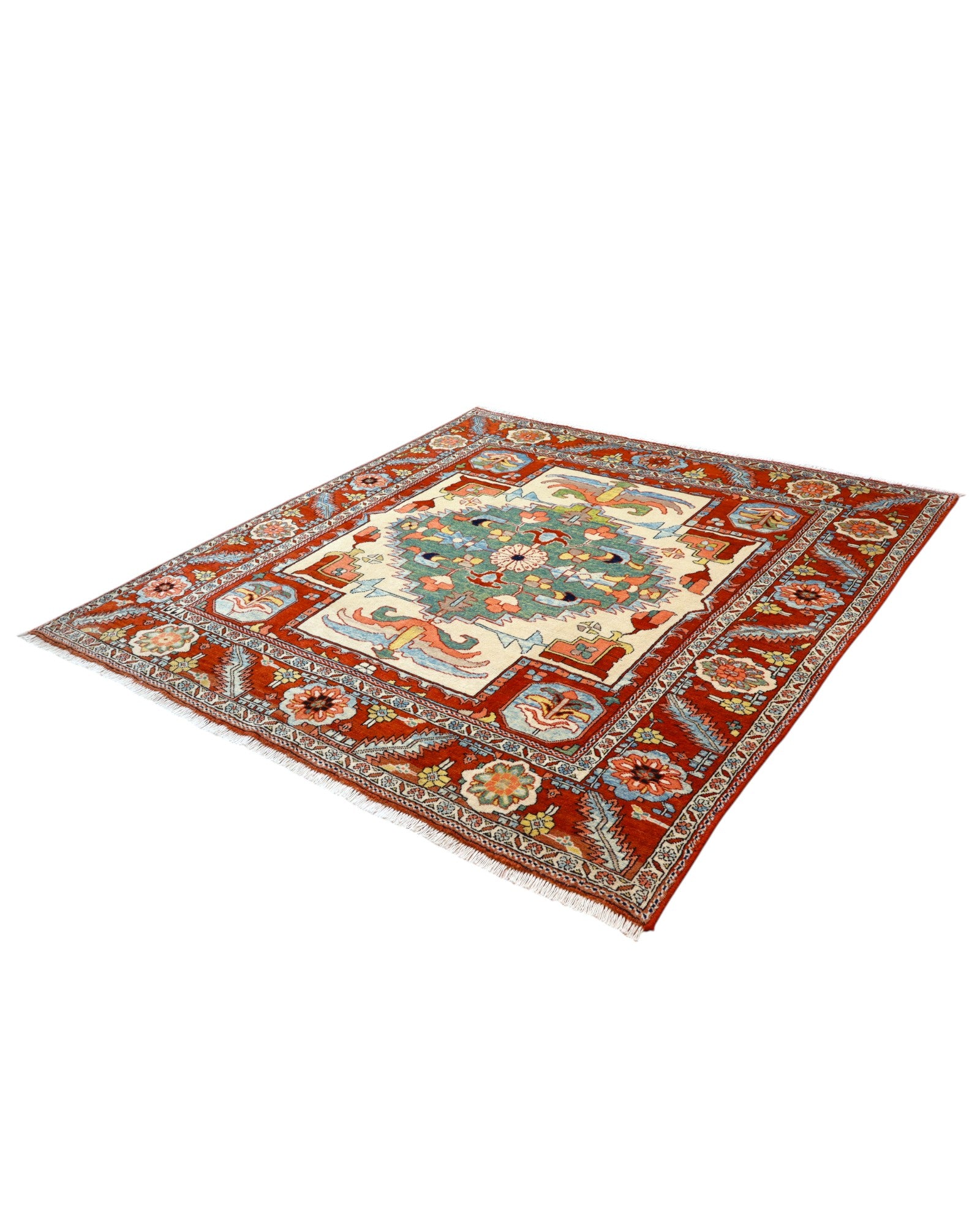 Immergiti nella ricca tradizione persiana con questo splendido tappeto Heriz, annodato a mano da esperte artigiane. Le sue dimensioni di 210 x 210 cm lo rendono perfetto per arredare con eleganza soggiorni, sale da pranzo o ampi spazi living. Il design classico Heriz, con il suo medaglione centrale geometrico e i motivi floreali stilizzati, è esaltato da colori vegetali caldi e avvolgenti. La trama e l'ordito in cotone resistente e il vello in morbida lana garantiscono la sua bellezza e durabilità nel tempo. Questo tappeto è un pezzo unico, un vero e proprio tesoro dell'arte tessile persiana, accompagnato da un certificato di garanzia che ne attesta l'autenticità e la qualità.