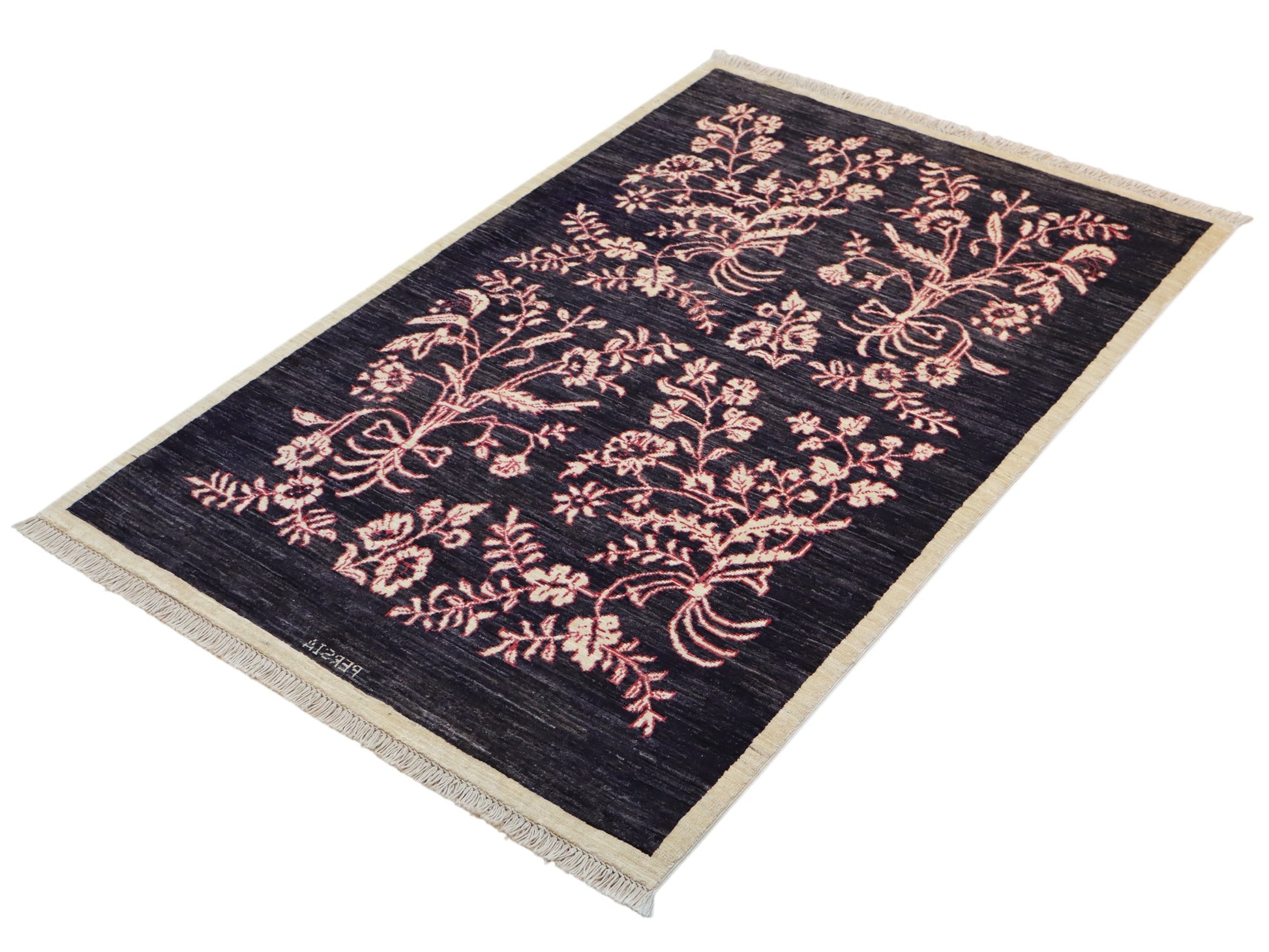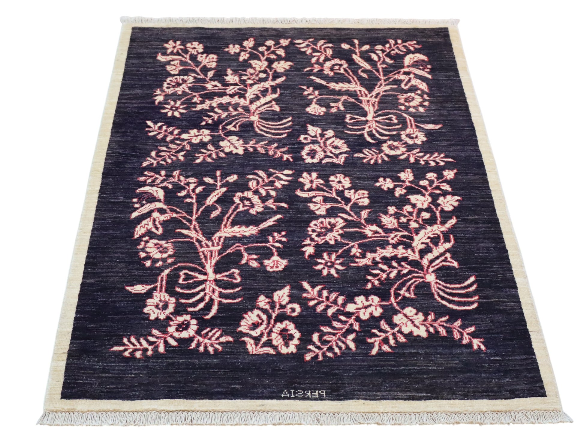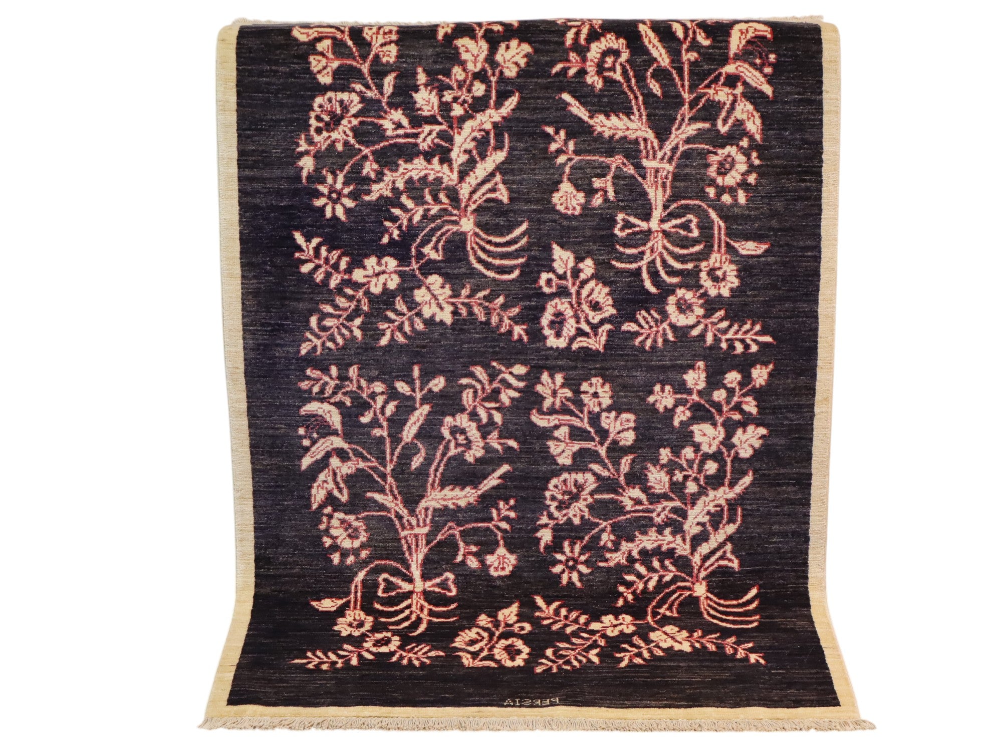 Il Tappeto Moderno 153x101 cm Persia è un raffinato esempio di artigianato persiano reinterpretato in chiave contemporanea. Il fondo blu intenso valorizza i delicati motivi floreali rosa, disposti in quattro pannelli armoniosi che creano un effetto visivo elegante e bilanciato.