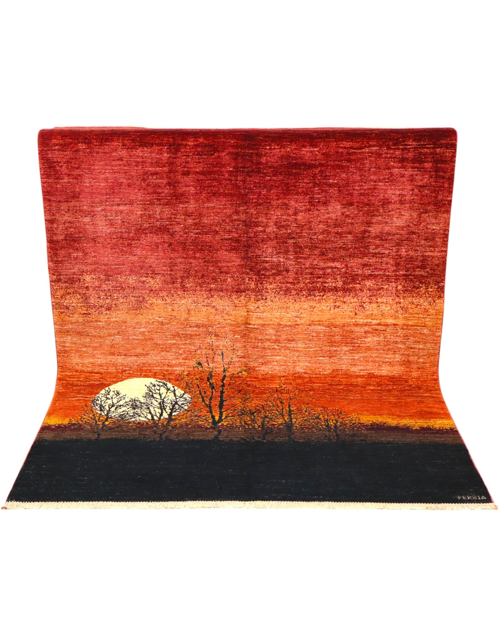 Questo tappeto moderno è un vero e proprio capolavoro, nato dalla creatività dell'artista Darios, che ha frequentato un'accademia d'arte, e realizzato con maestria dagli artigiani persiani. Annodato a mano su telaio tradizionale con trama e ordito in cotone resistente e vello in pura lana tinta con colori vegetali, questa creazione di 195 x 150 cm è un'esplosione di colori e suggestioni.