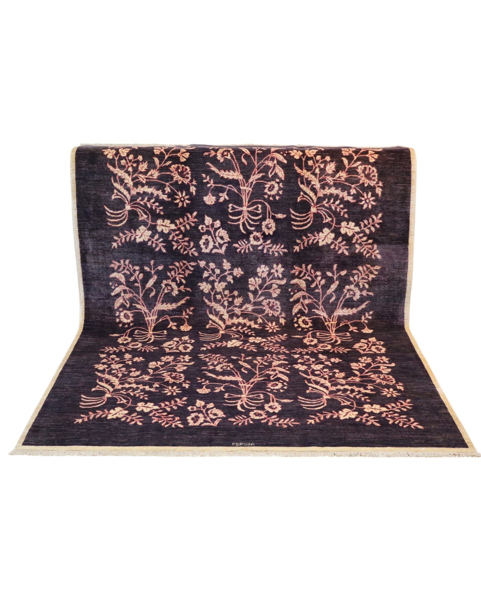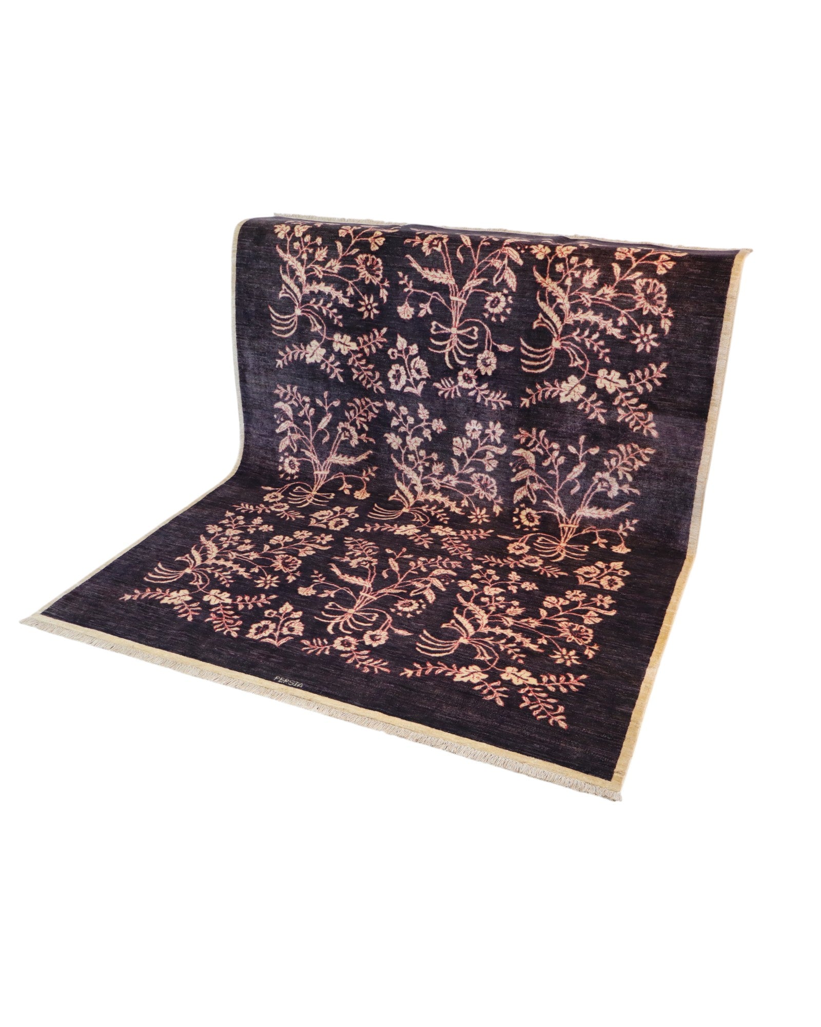 Un capolavoro contemporaneo che unisce raffinatezza e artigianalità. Il tappeto “Fiori di Darios” si distingue per il suo fondo color cenere, elegante e sofisticato, su cui risaltano motivi floreali e rametti chiari che creano un suggestivo gioco di contrasti.