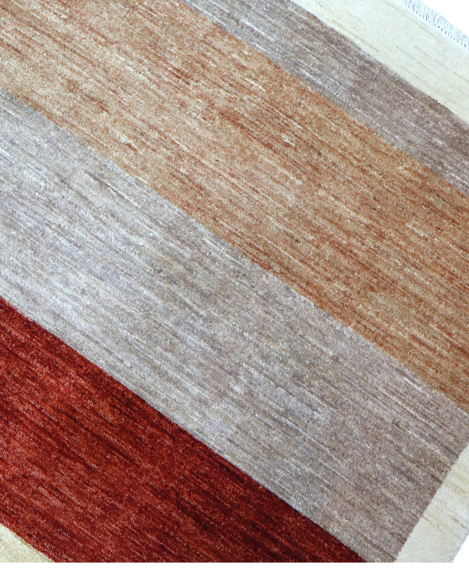 Questo tappeto moderno persiano 295 x 195 cm propone un design sobrio e armonioso, caratterizzato da fasce orizzontali che alternano tonalità calde e neutre.