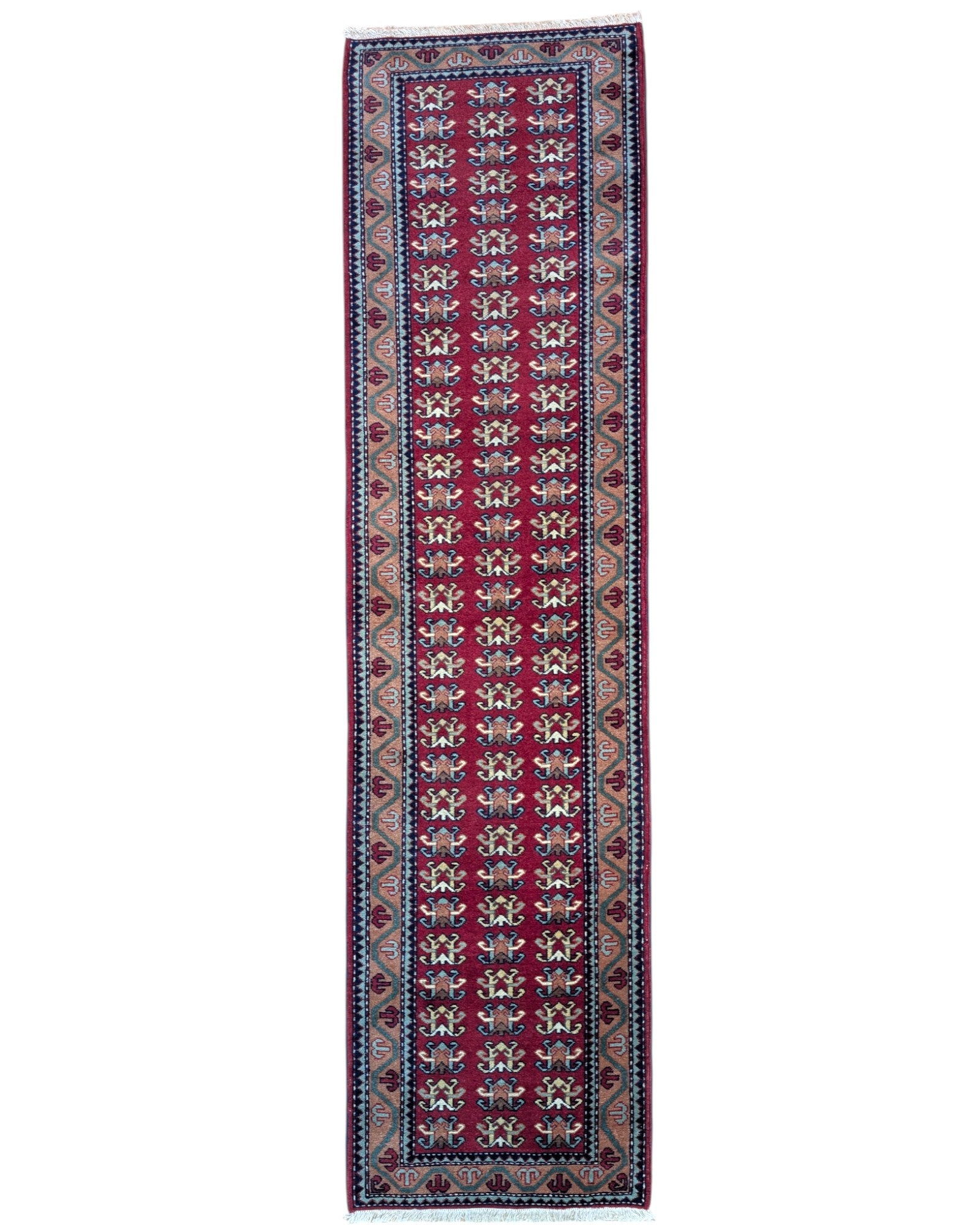 Avvolgi il tuo corridoio o ingresso in un'atmosfera calda e accogliente con questa splendida passatoia turca. Annodata a mano su telaio tradizionale in Turchia, questa passatoia di 302 x 80 cm è un'autentica espressione dell'arte tessile anatolica, un pezzo che unisce tradizione e bellezza.