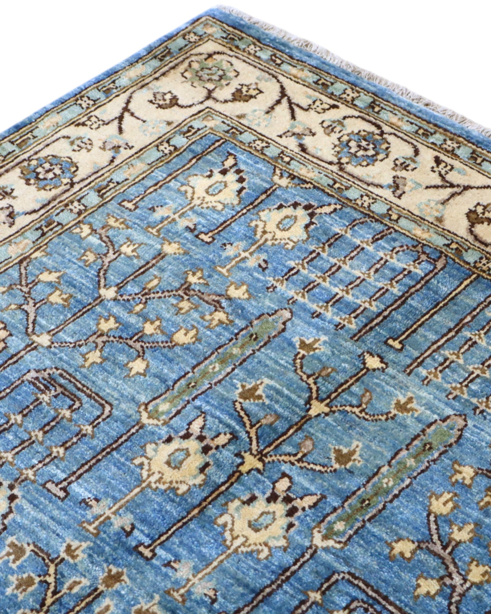 Annodato a mano da esperti artigiani con lana pregiata e cotone resistente, questo tappeto è pensato per durare nel tempo. La sua tonalità di azzurro è perfetta per portare serenità e armonia in ogni stanza, mentre la bordura beige aggiunge un contrasto delicato ma raffinato. Con il certificato di autenticità incluso, il Tappeto Ziegler è la scelta perfetta per chi desidera un pezzo unico e duraturo.